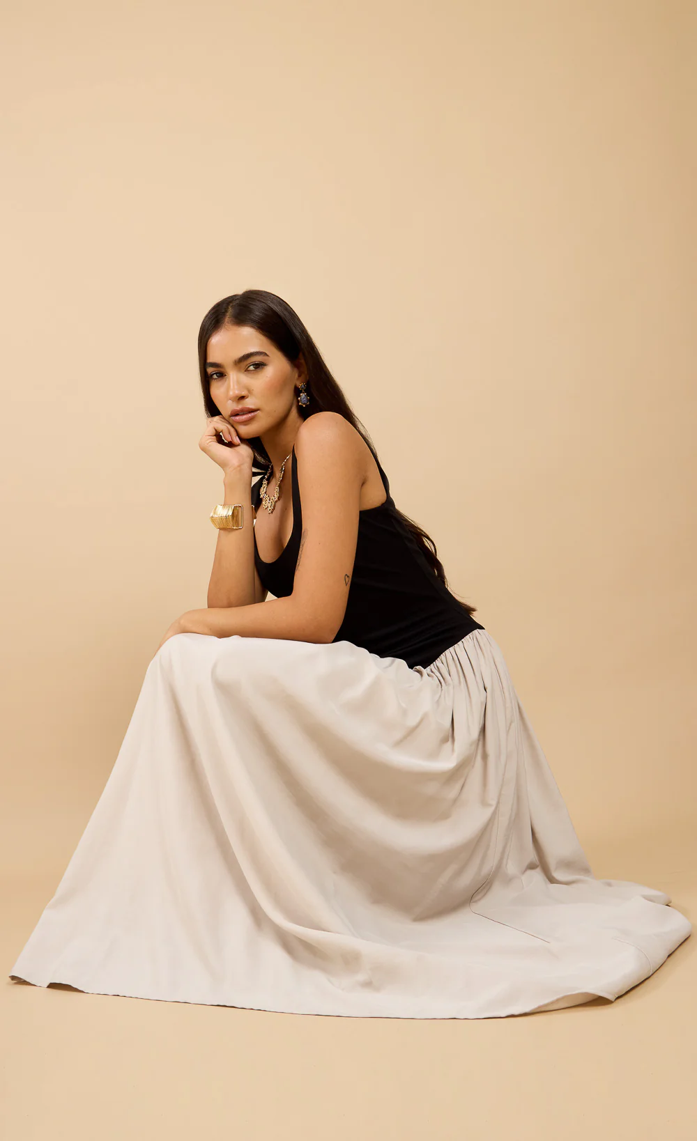-70%Elora Black Dropped Waist Midaxi Dress Vicky Pattison EDIT—