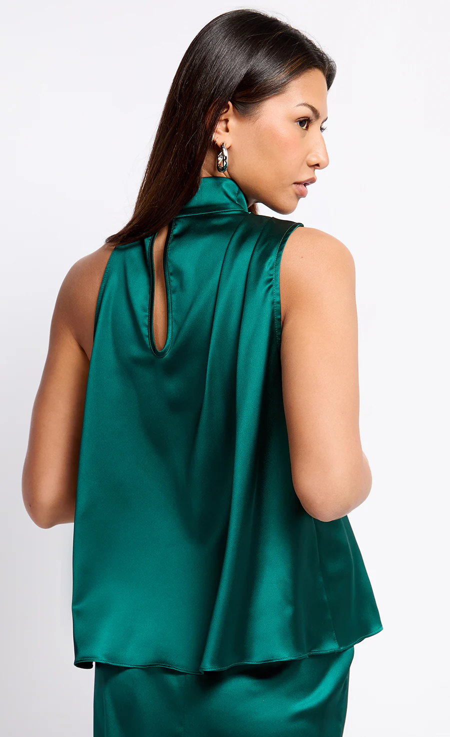 Introducing our Green Satin High Neck Top, a chic addition to your wardrobe. Crafted from luxurious satin, this top features an elegant high neckline that adds sophistication to any outfit. The smooth satin fabric offers a comfortable fit with a touch of glamour, making it a wardrobe essential for effortless style. Co-ord skirt also available.,